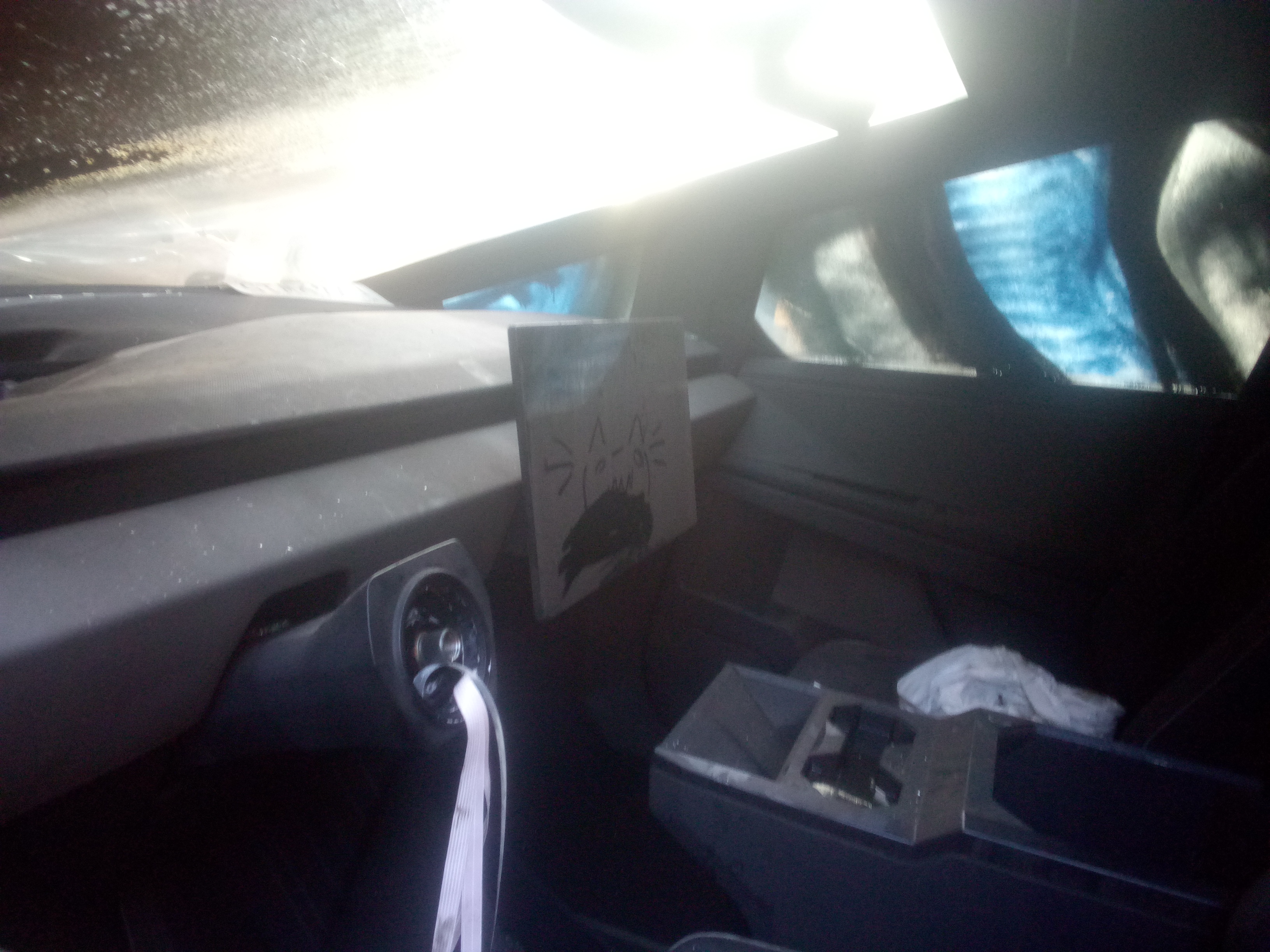 A copy of [[Douglas Adams]]’ novel ‘’[[The Hitchhiker’s Guide to the Galaxy (novel) The Hitchhiker’s Guide to the Galaxy]]’’ is in the glove box, along with references to the book in the form of a [[Phrases from The Hitchhiker’s Guide to the Galaxy#Knowing where one’s towel is towel]] and a sign on the dashboard that reads “[[Phrases from The Hitchhiker’s Guide to the Galaxy#Don’t Panic DON’T PANIC!]]”.{{blist {{cite tweet user=tiamaria68uk number=938930620511801345 access-date=December 8, 2017 date=December 8, 2017 title= Will the glove box contain “The Hitchhikers Guide To The Galaxy”?}} {{cite tweet author-link=Elon Musk user=elonmusk number=938947119246860290 access-date=December 8, 2017 date=December 8, 2017 title=Yes}} {{cite tweet author-link=Elon Musk user=elonmusk title=Plus a towel and a sign saying ‘Don’t Panic’ number=939005893634506752 access-date=December 8, 2017 date=December 8, 2017}} }}</ref>
